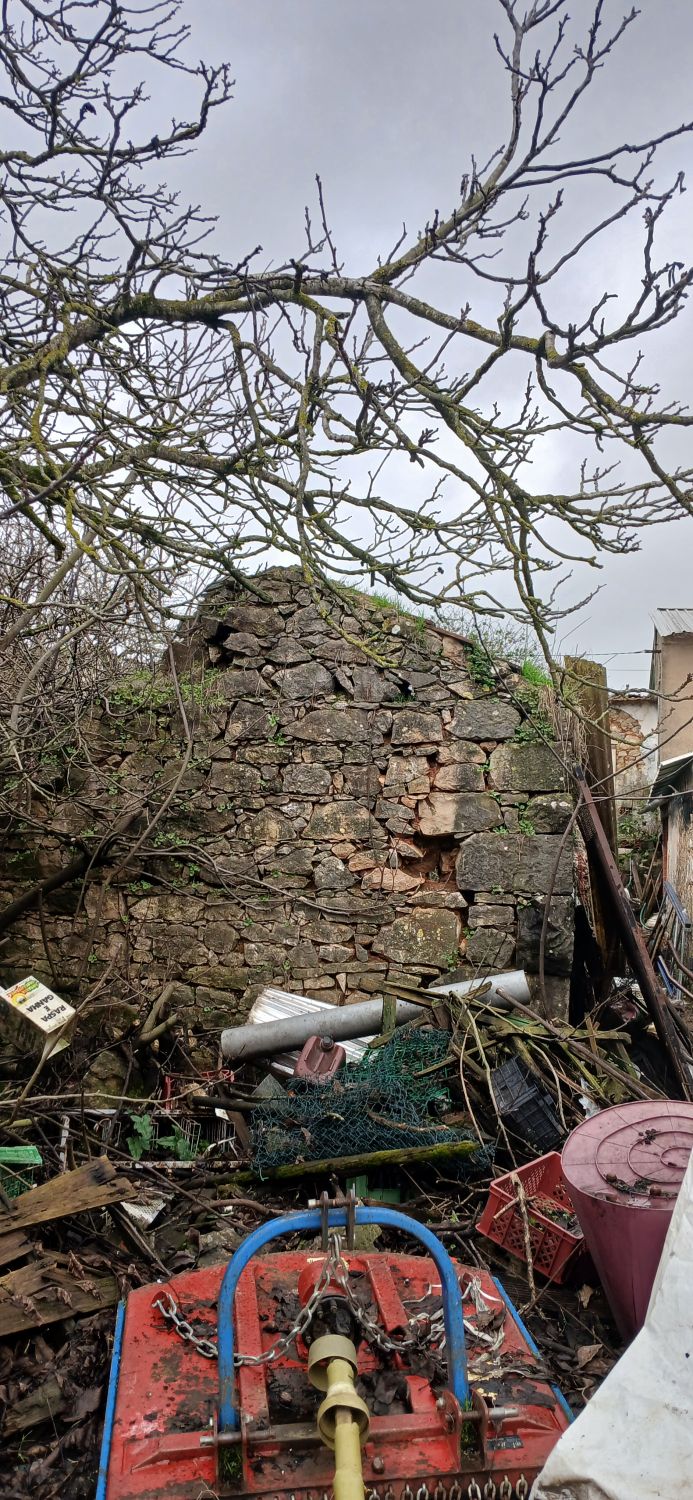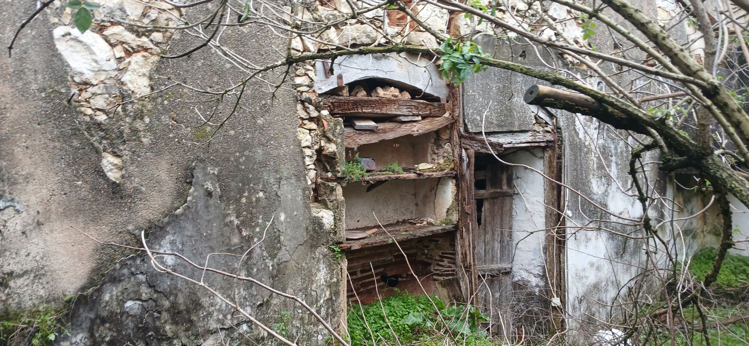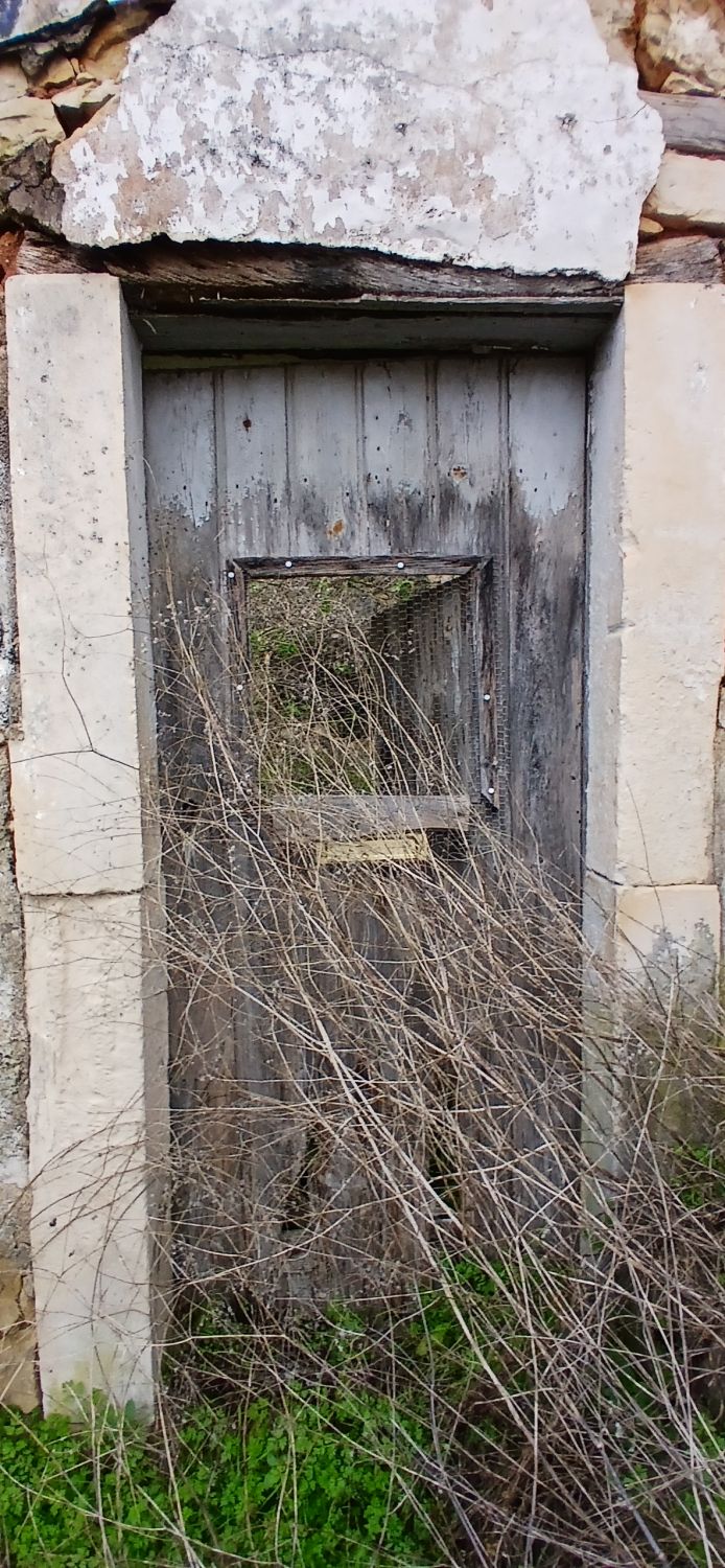 Casa de habitação e armazém em ruinas, edifícios antigos em pedra calcaria típica da região.
