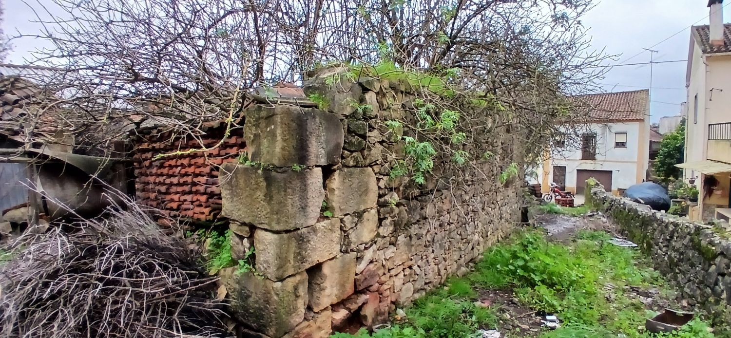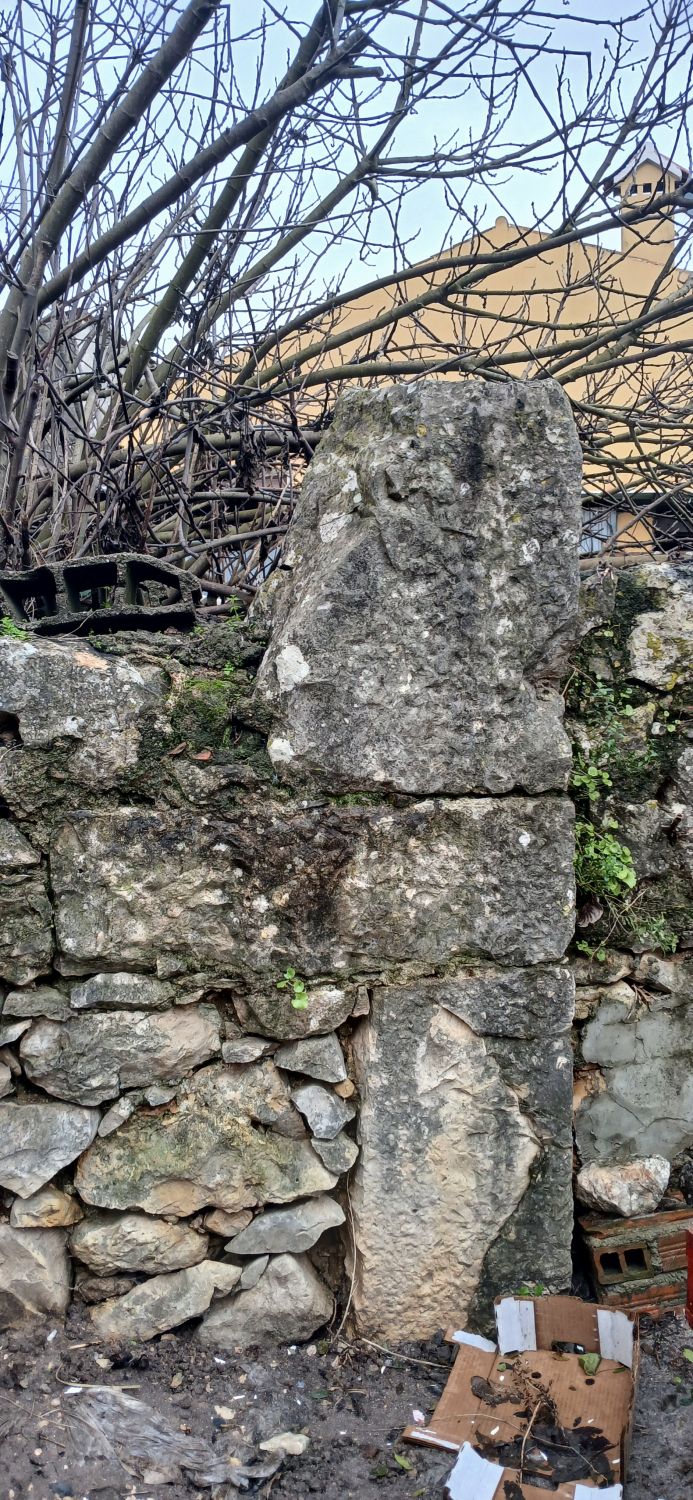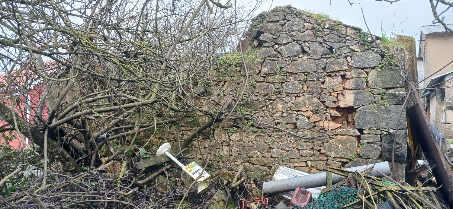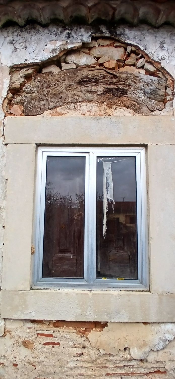 Casa de habitação e armazém em ruinas, edifícios antigos em pedra calcaria típica da região.