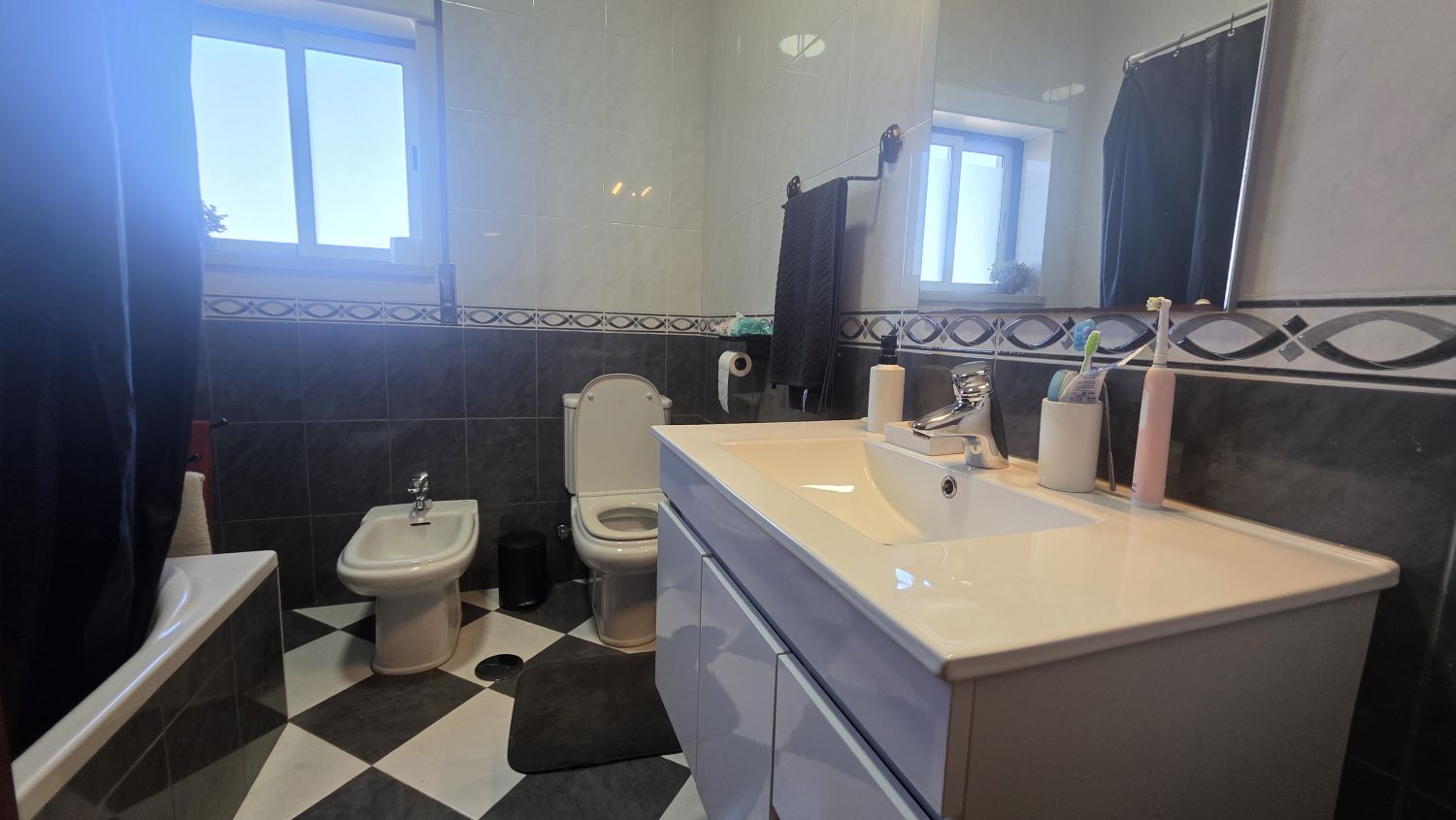 E uma Casa de banho com banheira.